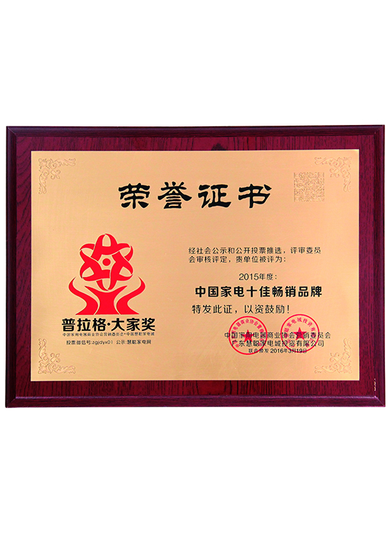 Best Business Ethics Enterprise in the United States; Best Recommended Products by China Home Appliance Business Association Baicheng Wandian; 30 Years Excellent Brand Award for Chinese Home Appliances; Prague Master Award in 2015 (1000 People's Congress of China Home Appliances Channel); Top Ten Best-selling Brands of Chinese Home Appliances